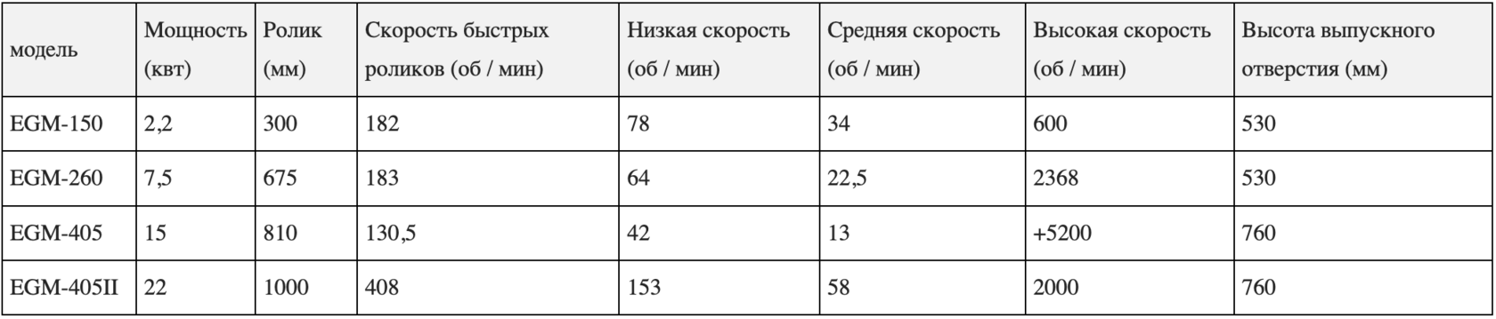 Мельница состоит из трех роликов, закрепленных на раме и приводимых в движение непосредственно двигателем. Направление вращения между роликами, как правило, отличается, передний ролик вращается вперед, а задний ролик вращается назад.